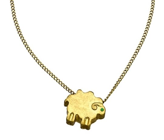 Could this be Mercy’s new gold sheep necklace? The original one can be found at www.maxandchloe.com - however, not with the emerald for the sheep’s eye; I added that. ☺
