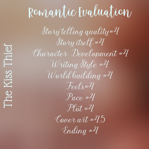 The Kiss Thief is my first book that I have read by this author and what a book!!! Now I won’t say its as amazing as I was expecting, and I think that is partly because this is my first book by Shen and I haven’t read a book this angsty in a very long time and it took a while to adapt to the angst levels, you definitely need to be in the right mood for this type of story. I truly enjoyed the epic feel to this story though.
