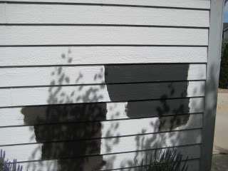BTW, I like the one on the left better because it has some dark greenish hues in it, and I think that would offset the red door nicely... and the garden. :) I may be in the minority on that thought, though. Wait for the other responses. :) Either way, it would seem a win-win situation - they're both lovely greys.