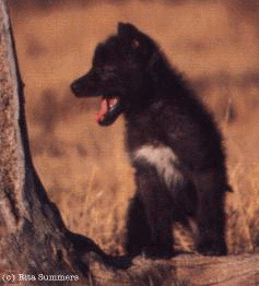 Personality: Whisper is quiet and shy. She moves silently like a ghost. Her name comes from her black fur and her ability to move quietly like a whisper on the wind. She loves to play pranks on the other wolves. She doesn't liked to be teased about her small size. Tease her, and you'll wish you hadn't. She does her best to protect her blind brother from her siblings.