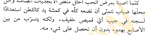 " من فرط إصرارنا على الحياة ما زلنا نتخيل أننا نملك القدرة على الحب وعندما يضيق القلب نوسعه قليلا مثل حقيبة الغريب ولو أدى بنا ذلك إلى تمزيقه بعض الشي ليتوعب قدرا آخر ومزيدا من الأوهام " ص 20 :((