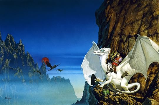 For The White Dragon, Michael Whelan created one of the all-time iconic covers. It's practically brimming with implied adventures ahead.
