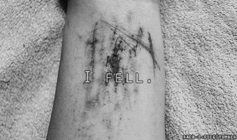 i miss cutting. i know its terribly stupid and selfish and ridiculous and twisted but i do. i think about all the times i went to school with cuts running up and down my arms, my sleeves hiding them and bracelets over top. i'd go to school hiding the canvas of red all over my thighs and... i miss it. i miss three am taking the blade and digging it into my skin... now.. now i can't draw all over myself everywhere. now i can only make little tiny cuts along my hips. i fucking miss my blades and i cannot wait until everyone is done pretending to care about me so i can cut again because i want the blood and the pain again.