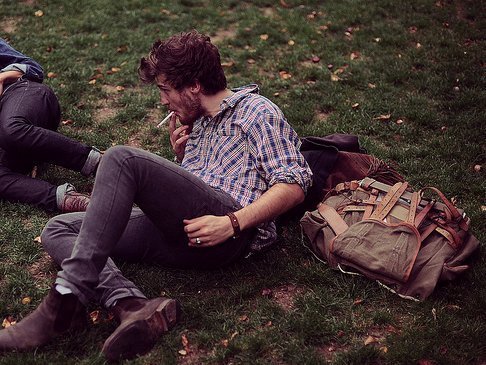 clothing: flannel shirt, boyish jean and booties.