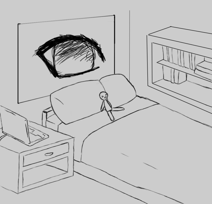 Oh yeah, crap, um.... BrbAnd yes, I try and draw as much of my character stuff as possible, the room I did earlier was jus a semi traced doodle though with random referencing (I'm sorry, I really really suck at furniture)