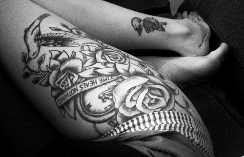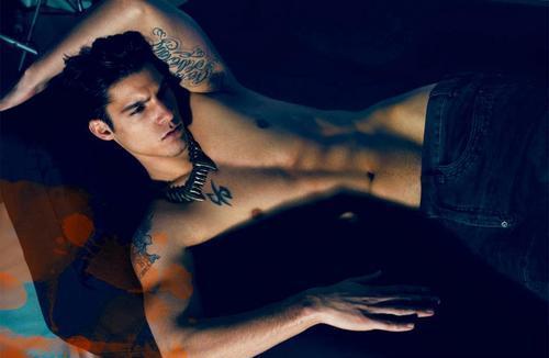 Alex has a couple of marks here and there from fighting on his sides, and arms though he has no serious scars. Alex keeps a guitar chip with him at all times, it's the one of the few things he saved from the fire that burned his house to the ground.