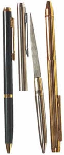 Pen Knife- A penknife, or pen knife, is a small folding pocket knife, originally used for cutting or sharpening a quill to make a pen nib. Originally, penknives did not necessarily have folding blades, but resembled a scalpel or wood knife by having a short, fixed blade at the end of a long handle. These knives were used for thinning and pointing quills to prepare them for use as writing instruments and, later, for repairing or re-pointing the quills. They may also be used to whittle wood. Modern penknives may have single or multiple blades and additional tools incorporated into the design.