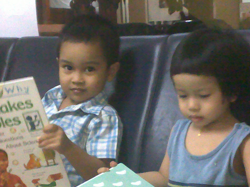 Bila nampak anak kecil kita membaca dengan sendiri, jangan perbetulkan mereka kalau kita dengar bacaan mereka ada yg salah. Umur 3-4 tahun mmg akan baca tunggang langgang le. Pronunciation salah, grammar merapu dan selalunya lain yg ditulis atas buku tu lain pulak yg keluar dari mulut dia. Tak apa. Biar dia baca salah, jangan ditegur. Nanti hilang semangat budak tu baca kalau kita asyik memperbetulkan mereka. Alah, umur 3-4 tahun! Biar baca salah, janji dia membaca.