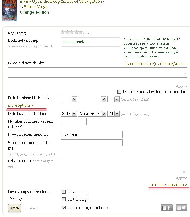 Metadata you can add from editing your review of the book (you don't really need to have a review for this, but you need [I think] to have the book marked as read). Currently the book has no metadata to be edited.