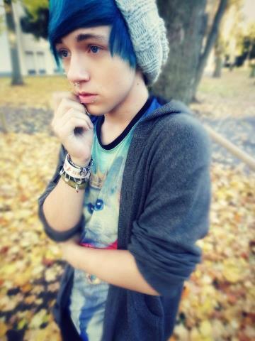 Nate is very small for his his age, both in height and weight. He has a very feminine appearance and he switches between blue, red, and black hair. Right now he has bright red hair and his eyes are naturally bright light blue. He dresses in loose tank tops ( like the one in the last photo ) skinny jeans, hoodies and beanies. He has very small breasts that he tried very hard to hide.