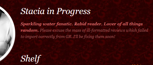 *grumble* headache. All of you pro bloggers are probably laughing at me. This is what I get for reviewing on GR for 3 years instead of starting a blog. :(