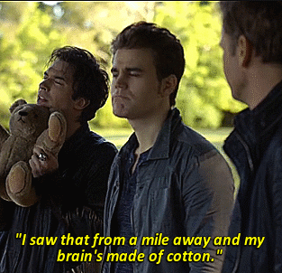 Damon is so adorable when he is acting like a child. Like when he found his car and started making those engine noises? Or when he was holding Bonnie's bear? Aww...I love him so much that it physically hurts.