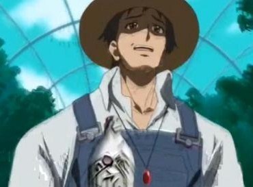Charden wishes to take down Chronos, though he does not agree with Creed's methods, leading him to defect from the group with Kyoko while their castle is being attacked by Cerberus. Out of all of the Apostles, he is the only one that spoke up about Durham's murder. Charden knows that Creed does not care about them and only sees the Apostles as a means to an end. Train has him promise to keep away from battle after saving him from death at Sephiria Arks' hands. Charden was formerly an assassin.[5] At the end of the manga he is coughing up blood, implying an illness. At the end of the anime, Charden is seen standing among ruins, smiling.