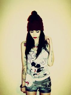 it seems oversized shirts, shirts, ripped tights and combat boots