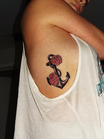 [Distinguishable markings] She has several tattoos, one of which expands across her entire back as the figure of a dragon. A small selection of her clothing dip low enough on the back to catch a sliver of the tattoo but a very select few have been permitted to see it in full. As well as this tattoo, she has a wrist tattoo that contained the words Never Say Die. Pandora also has the well concealed nose piercing that is scarcely ever presented. Even more scarce to behold is the belly button piercing that was obtained while at a nighttime party under the influence of alcoholic beverages.