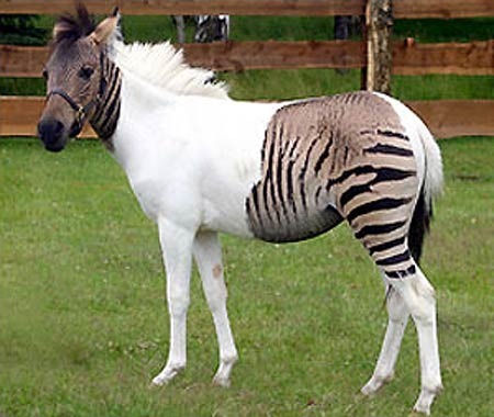 Is it a zorse or a hebra? Or perhaps a zonkey? Is it inappropriate to refer to a donkey/zebra hybrid as a honkey?