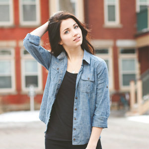 Clothes: Black t-shirt, jean jacket, dark skinny jeans, converse, and silver heart locket.