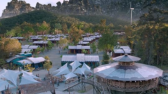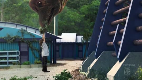 In the center of Terra Nova are alrge fields of different plants. The market and town square are by the opening gate by Commander Taylors hut and housing runs along the outer rim of the community. Large wood gates with spikes encircle the community, watch towers with sonic centry guns are at every couple feet. Each watch tower has at least 3 soldiers in each one. Other buildings are scattered around the housing area like a bar, the hospital, science room, and school building. The hospital is located closer to the front entrance. Each house looks the same, inside and out. They are painted blue and inside they have 5 rooms- 3 bedrooms, 1 bathroom, 1 kitchen/living room.