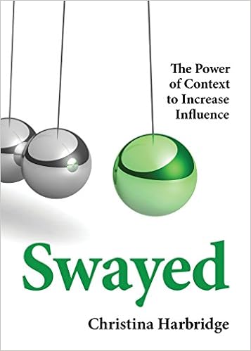 * Title: Swayed: The Power of Context to Increase Influence * Author Name: Christina Harbridge * ASIN: B01GULFKAC * Publisher: Nothing But The Truth Publishing * Publication date: June 9, 2016 * Format: ebook (Kindle) * Description: Think about the most incredible inventions, events or movements in history. You’ll recognize that each began with a person being able to influence others to join him. We need the ability to sway others to begin nearly everything we create—it gives us the power to set a new reality into motion.