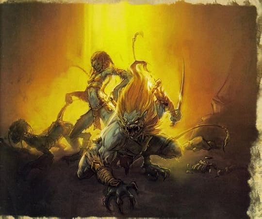 Cultural Description: They are the mortal enemies of Naga. They eat Naga hatchlings, but none are stupid enough to go up against an adult, as their poison can kill them. They scavenge for food when not eating Naga children.