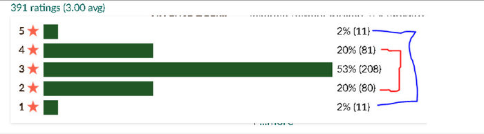 But I think 22% 4 or 5 stars is pretty generous. To me, a 3 star book is "average"... perfectly fine entertainment, but not great or especially memorable.