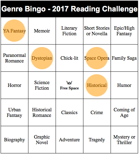 So far I have finished a "YA Fantasy", and I am currently reading a "Dystopian" novel, and listening to an "Epic/High Fantasy" on Audible.