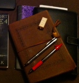 (Just kidding. That part is a cheap ball pen usually lifted from my bank or church. But I insist on the leather journal!!!)