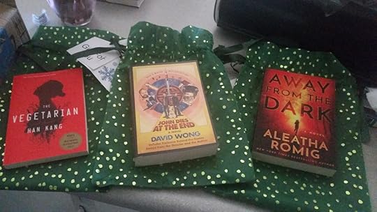 Thank you, Thank you, Thank you to my secret Santa. I received 3 books, 2 from my tbr and one is a recommendation from them that looks amazing!! I literally screamed each time I opened one of the bags and did a little shimmy dance! Can't wait to read all of these! I seriously can't thank you enough who ever this was from. So very kind of you. I hope you have a very Merry Christmas.