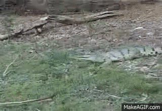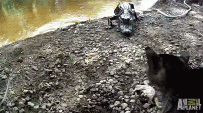 The alligator looks like a young one but this cat who thinks he is a lion doesn't back down! LOVE IT!
