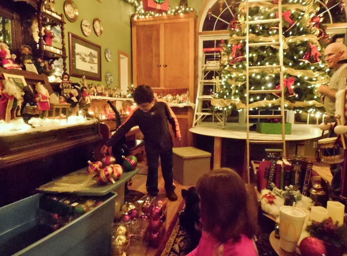 Thanks Cheryl, we are now working on the big tree in the living room, the rest of the trees are done. I am almost done in the house except for the bedrooms, bathrooms, and laundry room, which won't take as long. The big tree takes us the longest of the trees, we will probably finish on the weekend, the my husband will start outside and I'll work on the village under the tree. Here are some pictures of my husband and grandchildren decorating the tree. It's funny how much slower it goes with them helping, why the date says 2017 I don't know. :-)