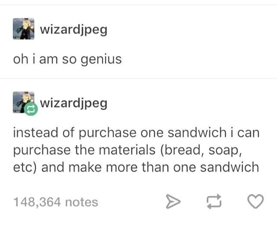 So I think that has to do with some of my weight issues. Like, my mom used to tell me when I was younger that if I wanted something specific to eat and I really really wanted it, I should just eat it. Because I'll go around eating lots of other things searching for that taste. And...I did that for a while. But now it's more like, I eat a little of the meals I have to eat but don't like, then I overeat when I get a meal I do like because I'm compensating for all the starving I did of myself before. And like, I could live on just the little bit of food that I hate, so I wasn't really starving myself.