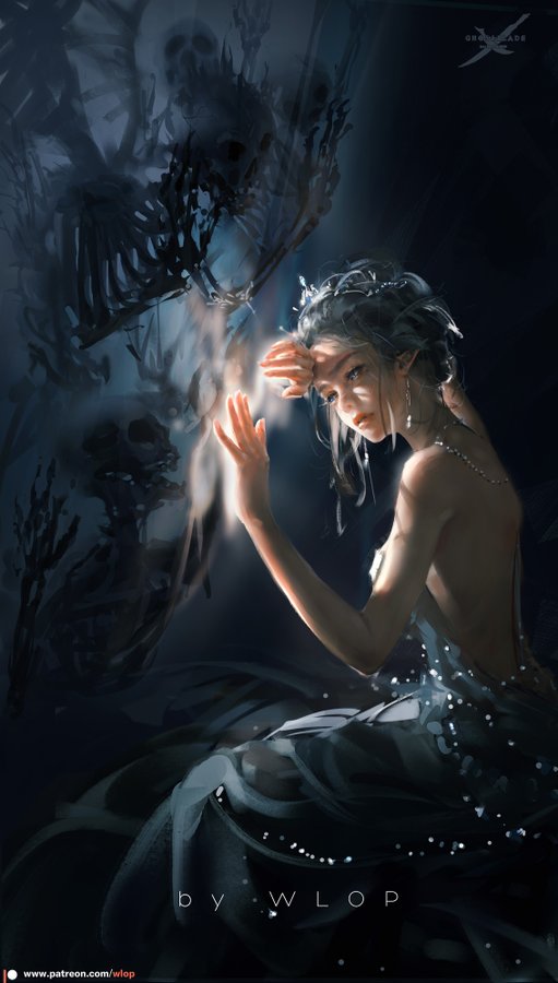 Selene is a bit on the shorter side standing at just 5 feet two inches. She has a curvy yet slim body type with a waist that cinches in perfectly before blossoming out. She weighs 114 pounds given she's a rather small girl with jet black hair that falls down to her mid-thigh in cascading waves. She has emerald green eyes and a sort of greyish ivory skin tone.