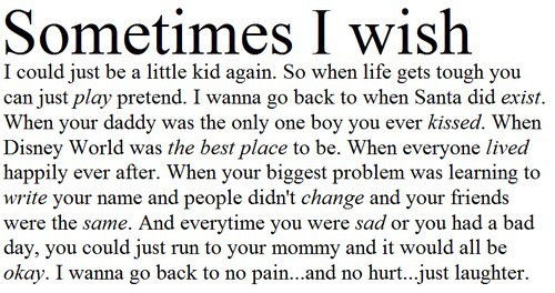 Now I'm stuck with the realization that I spent the best days of my life looking forward to things I'll never have, a happy teenage life? Yeah right. Being who I really am? Keep dreaming, Ayah.