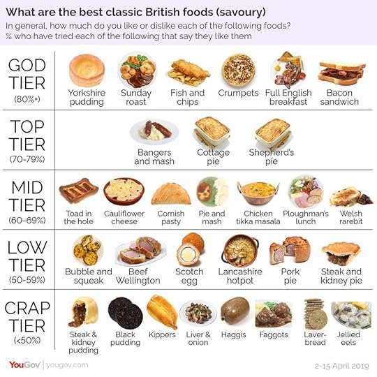"British food is stereotypically held in low regard by other countries, but a recent YouGov survey found that 91% of Britons enjoy their own national cuisine. Now, new YouGov Realtime research delves deeper into that statistic and reveals the popularity of 50 classic British foods" ...