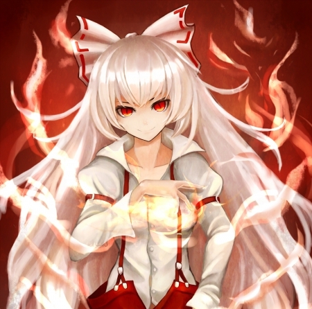 [Powers:] Her mother was a fire and wind elemental. Minoring can manipulate and generate flames and wind to an extent. Whenever she's extremely determined to do something, flames ignore in both her eyes