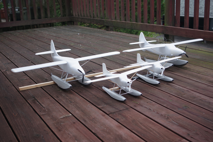 The two larger planes are Otters, and smaller ones Cessna 185s. Wingspans are 29" and 18" respectively, all in the same scale of 1/2" = 1'