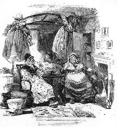 The whole conversation, however, and the bomb Mrs. Prig let explode in connection with Mrs. Harris were marvellous. Likewise was Mrs. Prig's tendency to feign interest in what Mrs. Gamp was saying in order to absent-mindedly help herself to something more to eat and to some more tea with spirits. I must confess that I have repeatedly used the same strategy.