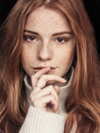 Red has highly attractive and alluring looks, which she gained from her mother and grandmother. She is quite capable of earning a certain amount of attention from men and women alike. Hence the name, she had striking and wild looking red hair that she prefers to wear in a straight main to her mid back. It is extremely beautiful and usually somewhat wind blown looking in an appealing way. Red has a very pale complexion, due to the hair, that is spattered in a thick layer of light freckles. She has soft coffee brown eyes, they are so dark that the pupil is indiscernible from the iris itself and her eyes are shadowed by long, fine red eyelashes, matching the color of her hair. Her eyes have been known to burn black as coals when she is in a mood, which is very easy. Red has slender red eyebrows usually arched in a sly and guarded fashion.