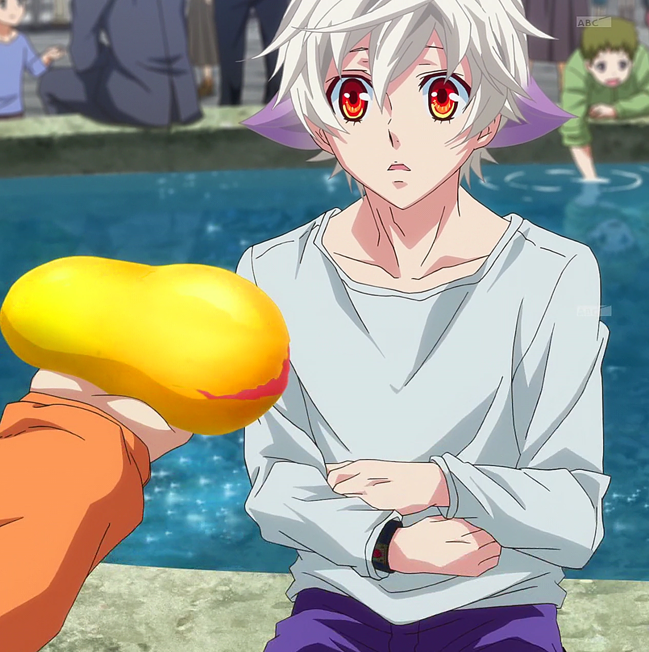 {Eyes/Hair}: - Red eyes and white hair