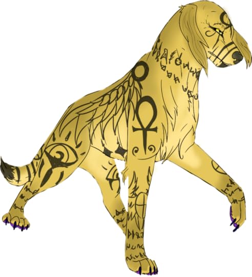 {Other} : He is part mutt and has a set of down pointed dog ears as well as a long fluffy tail, both in a golden tone a bit lighter than his skin. He can hide the features if needed, though he feels much more comfortable when he doesn't have to hide them. These features are fairly similar to those of a saluki.