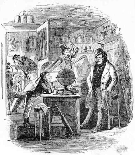 In Chapter 32 Mr. Toots makes the acquaintance of Captain Cuttle when he is sent by Susan Nipper to Sol Gills' in order to hear some professional opinions on the newspaper report that announces the Son and Heir has been given up as shipwrecked. The Captain, whose hopes were fading anyway, says that a ship's log is "the truest book as a man can write" and resigns himself to having lost both Walter and his uncle. A visit to Mr. Carker's office shows him the true nature of that gentleman, rather belatedly. Carker is not too sad about Walter's death, and he indirectly accuses the Captain of having had dishonest plans concerning Walter's rise in the firm - via Florence.