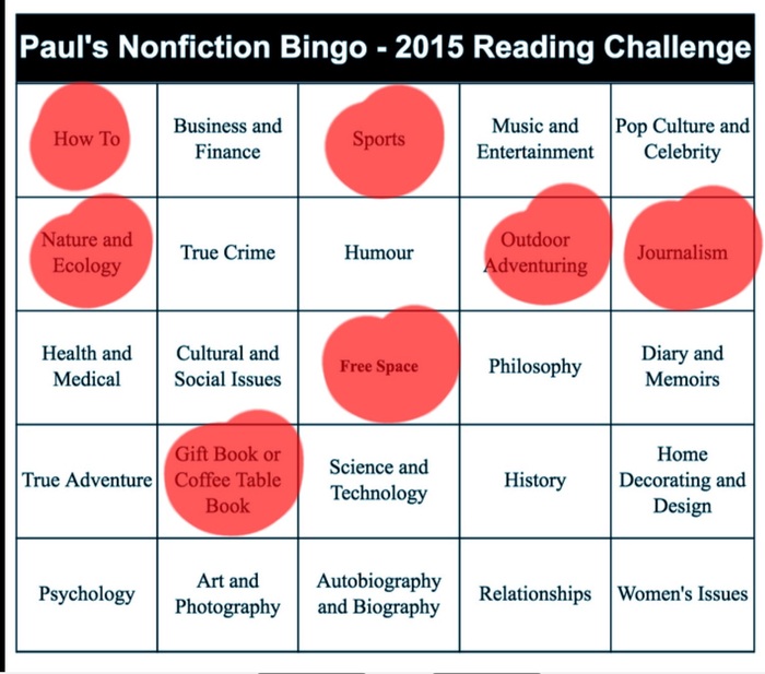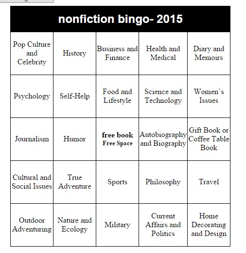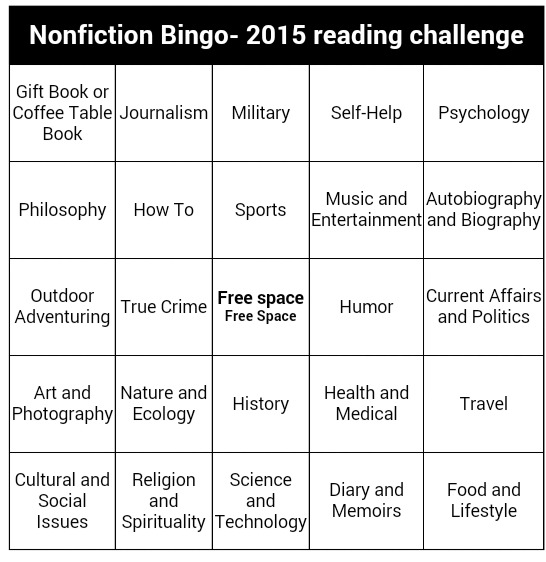 I've only read two nonFiction books so far. I'm filling a book into as many categories as it will fit, and will edit out later. (I'm doing the same thing on PopSugar Challenge). It's just easier for me this way. I have two of the 30 done.