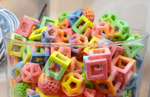 3D printed candies: Nod to the geometric shapes of the original picture.