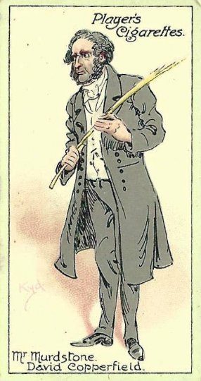 A 'cigarette card' image by 'Kyd', of stern Mr Murdstone