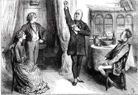 Mr Micawber is completely taken over by the strength of his feelings, and roundly condemns Heep, until they fear that he will have some kind of paroxysm:
