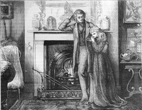 Inwardly, David is still worried about the possibility of Agnes marrying Uriah Heep, and asks if there is any change at home. She reassures him by saying "the step you dread my taking, I shall never take."