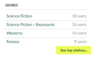 Open the book in GR and go to the Genre's list on the right side of the page. Click on "See top shelves...."