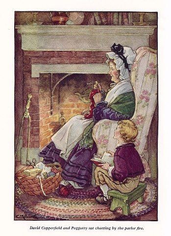 I like Peggoty as a character. She is warm-hearted and practical. I loved the imagery of the buttons popping off her dress when she hugged David. And the line about the lost sheep--not sinners, mutton. Lots of cute, charming stuff here. My favorite chapter was the one at the Peggoty boat house. I enjoyed the Noah's ark imagery, David's child-like observations, and his puppy love for Emily.