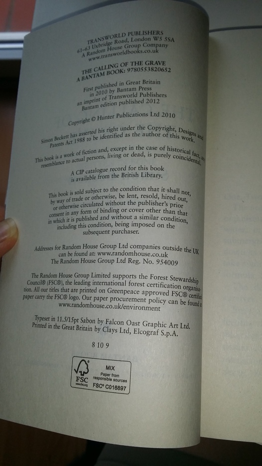 Looking to add new books to my "Want to read" list from the ones I got on my birthday, I realised the cover for The Calling of the Grave, with ISBN: 978-0-553-82065-2, is wrong.
