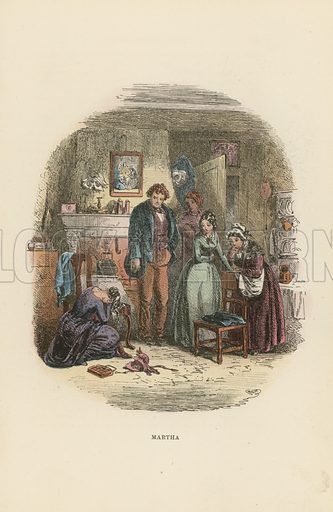 I think this illustration is wonderful. Not wonderful as in beautiful, but in capturing the mood and mystery of the scene in the novel. In each novel I seem drawn to one or two of the minor characters. In this novel, I am fascinated by Martha. She contrasts Emily in some ways and also reflects Emily as well. There is much to Martha’s character and I predict Dickens will keep her as an important element to the story.
